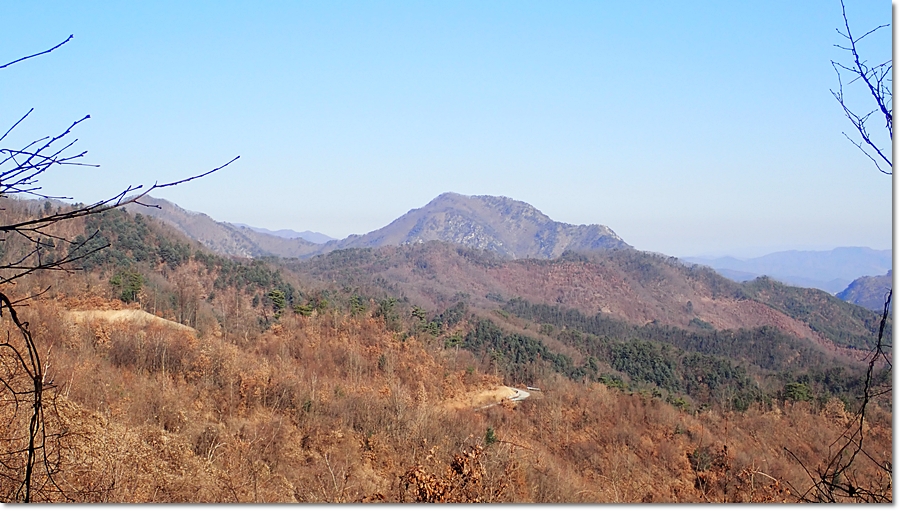 왼쪽 드름산과 가운데는 팔미리로 향하는 지능선이 아닐까,,,솟을산님 언젠가 방아산 올라 저 능선으로 내려가셨지,,,