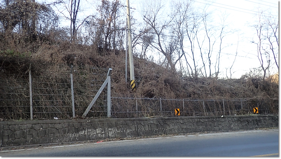 잡목이 가득한 불편한 길을 뚫고 한치고개로 내려서는데 돼지열병 철망이 가로막고,,,