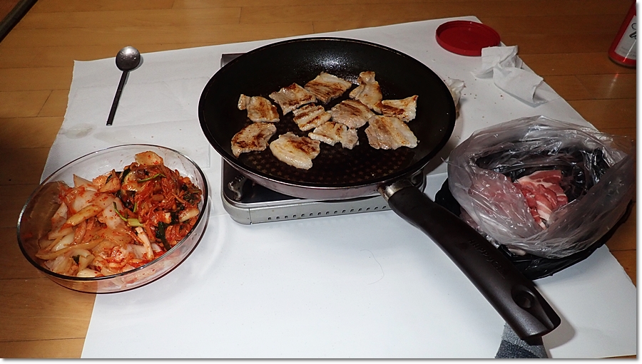 후평 시장에서 삼겹살 한 근과 소주 한 병 구입하고,,,